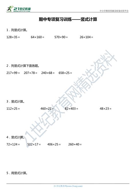 小学四年级上册竖式计算练习题400题 松鼠文库